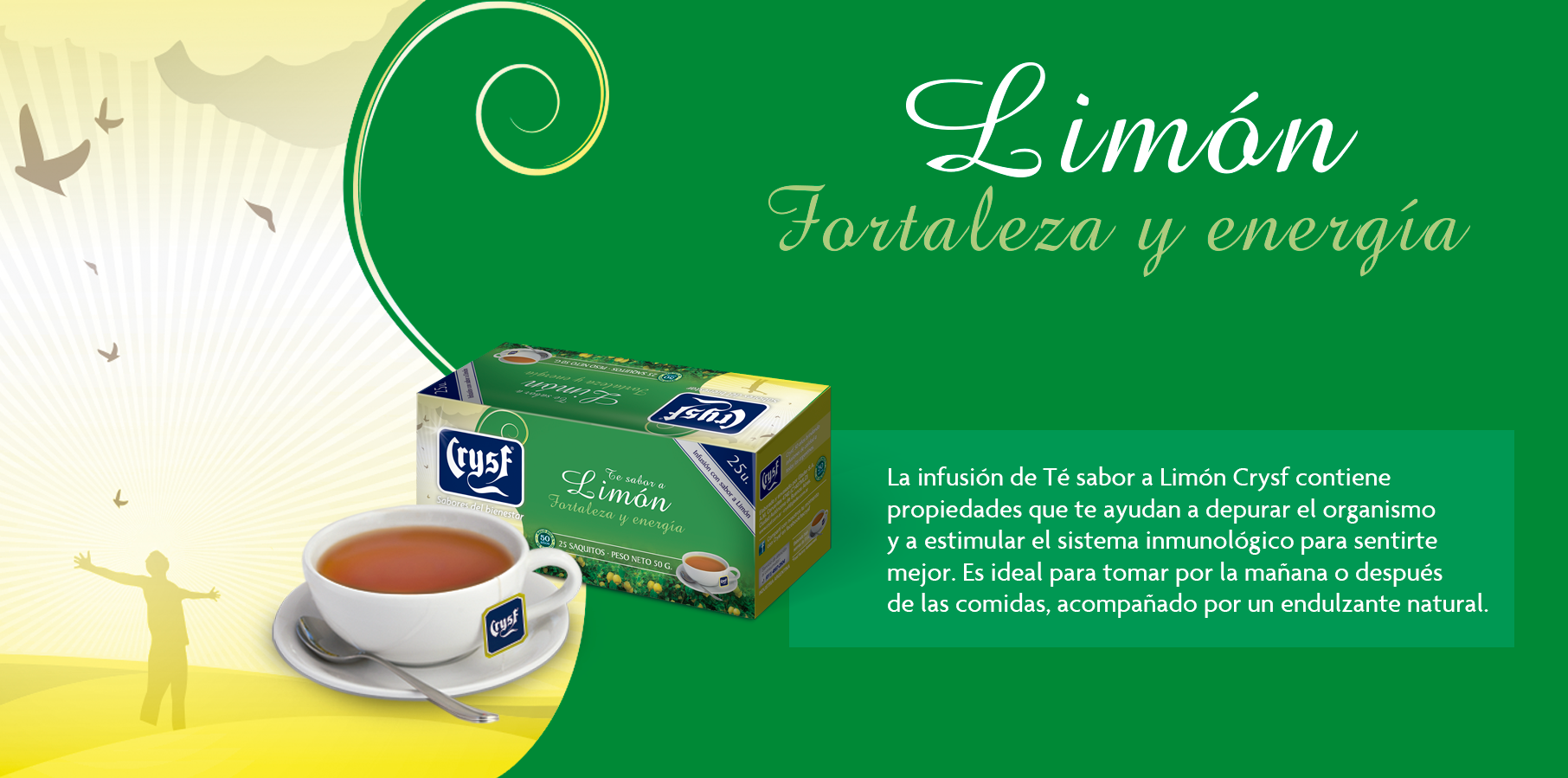 Té Crysf tiene un exquisito sabor, que se disfruta en momentos claves para la alimentación como el desayuno y la merienda. Además de su distinguido sabor contiene un gran aporte de antioxidantes y minerales que te hacen sentir bien.
